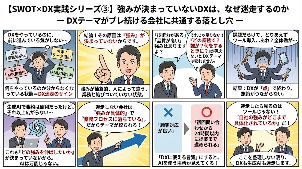 • クロスSWOT分析を活用した「積極戦略」の構築支援