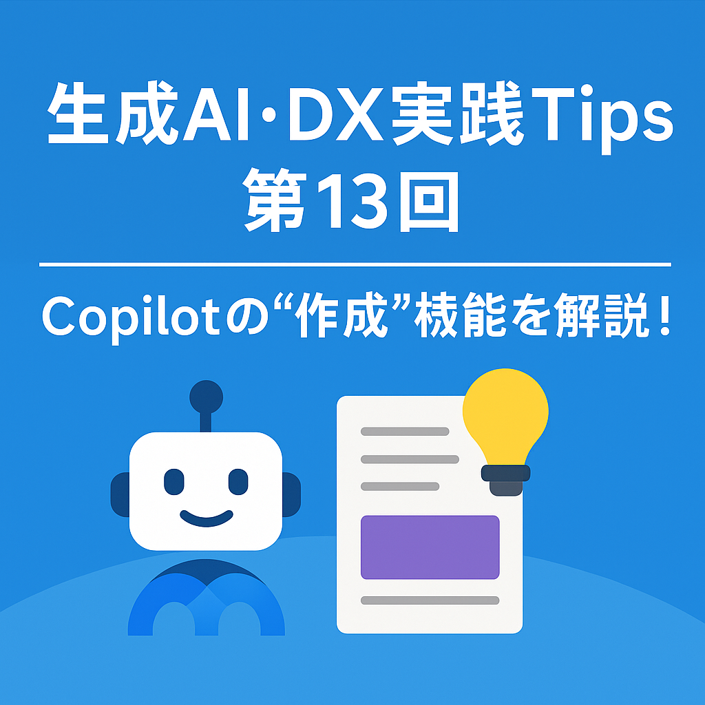 本日は「生成AI・DX実践Tips 第13回~Copilotの”作成”機能を解説!~」というテーマです。
