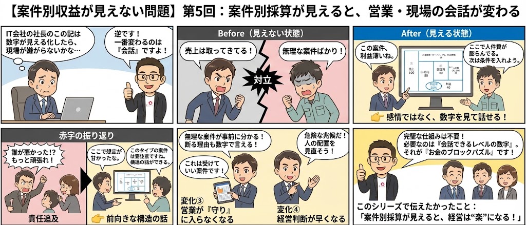 【案件別収益が見えない問題】第5回:案件別採算が見えると、営業・現場の会話が変わる