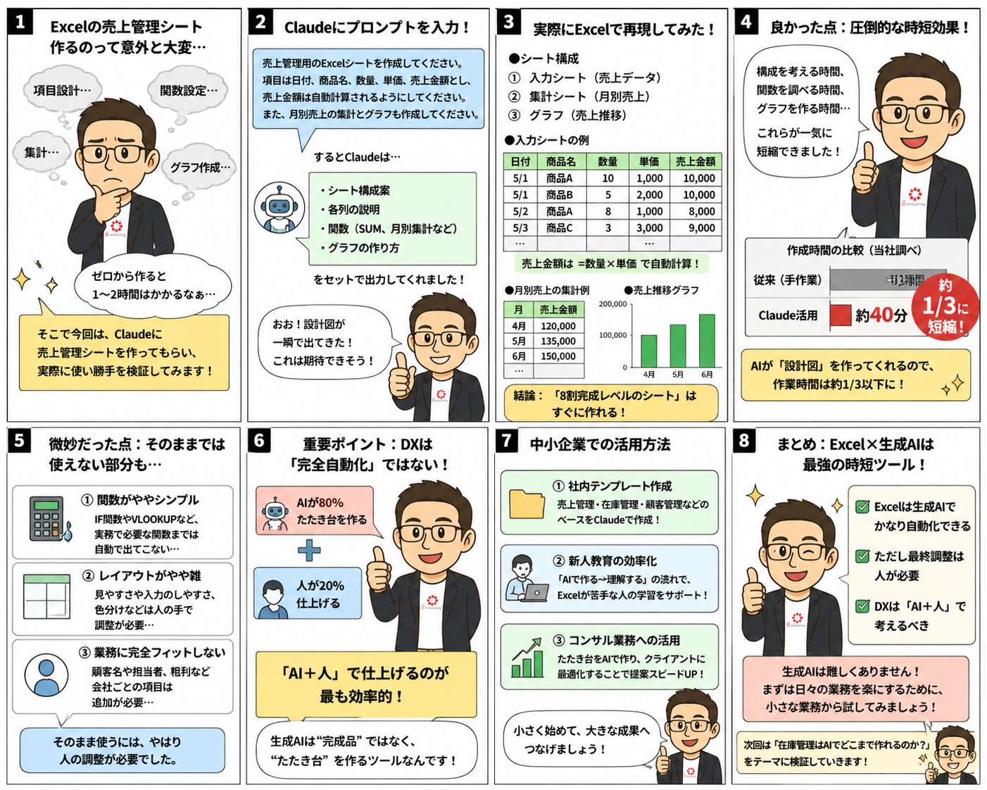 このツールを一度作成しておけば、毎回のクライアント財務分析で使い回し可能。顧客へのヒアリング当日に、その場で数字を入力して即座に分析結果を見せる、という圧倒的なスピード提案が実現します。