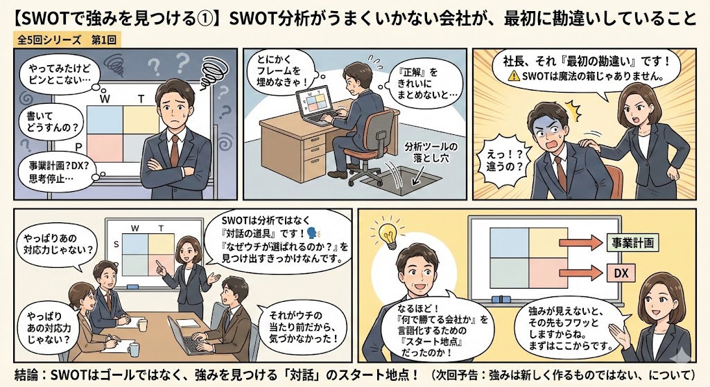【SWOTで強みを見つける①/全5回】SWOT分析がうまくいかない会社が、最初に勘違いしていること
